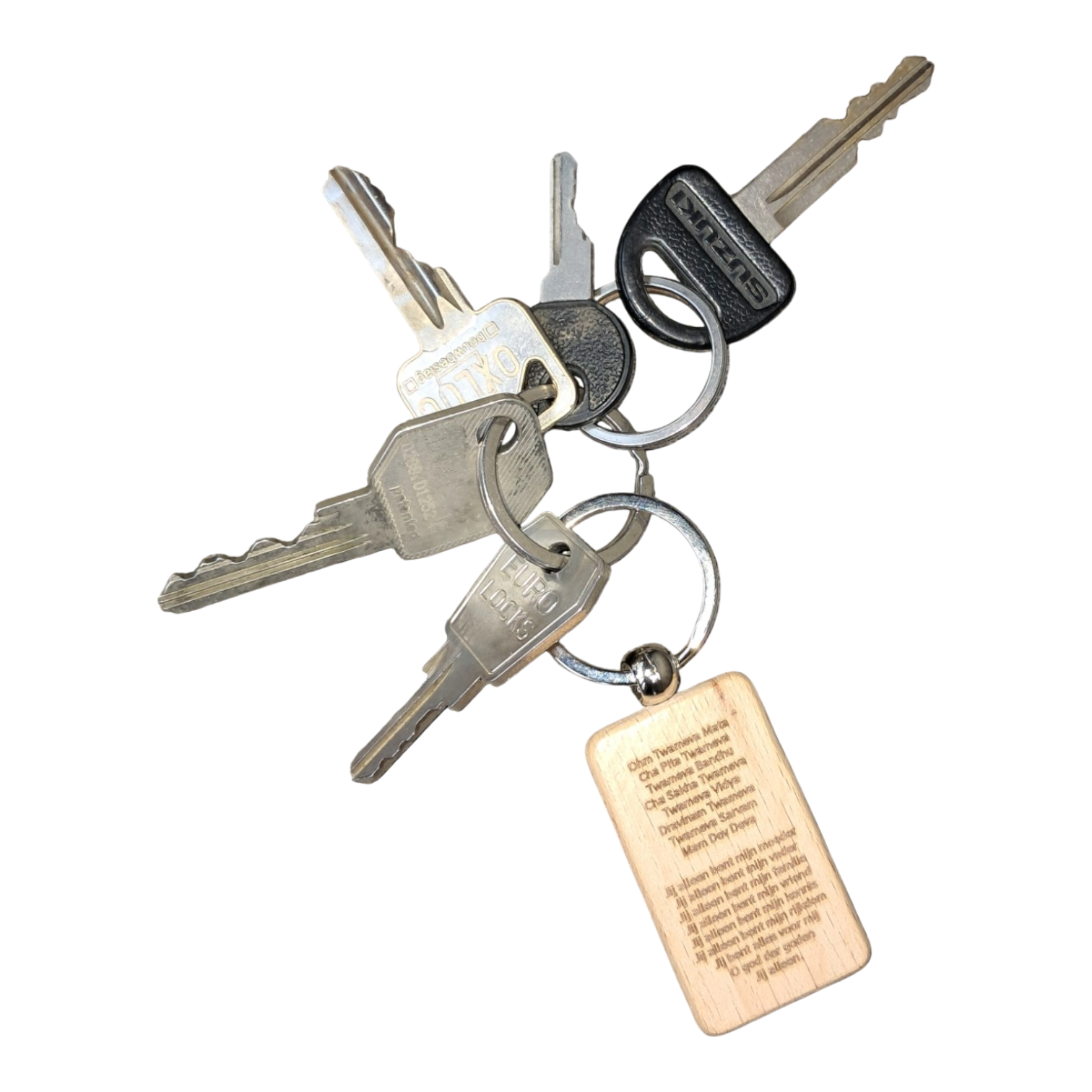 De houten sleutelhanger met rvs sleutel ring om te hangen aan uw bos sleutels, in de auto of om creatief mee te zijn. Deze hoogwaardige product is met een lazer gegraveerd. Hierdoor is dit in het hout gaan branden en is dit 100x duurzamer dan stickers en gaan deze langer mee zonder te vervagen.